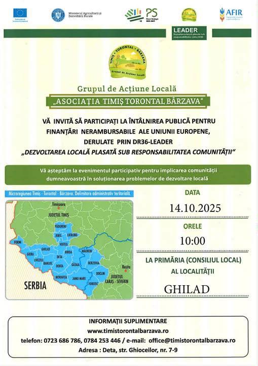 Intalnire Timistorontalbarzava, 14.10.2025, ora 10!